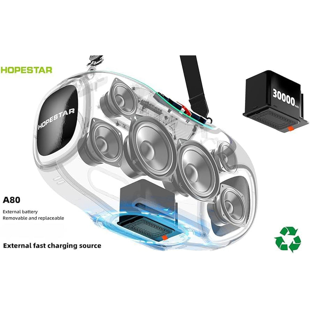 Bring the party anywhere with the Hopestar A80, a large portable Bluetooth boombox built to impress with its 350W of powerful, high-quality audio. Featuring a 6-speaker sound system that delivers deep bass, rich mids, and crystal-clear highs, the A-80 fills any space — indoors or out — with truly immersive sound.
