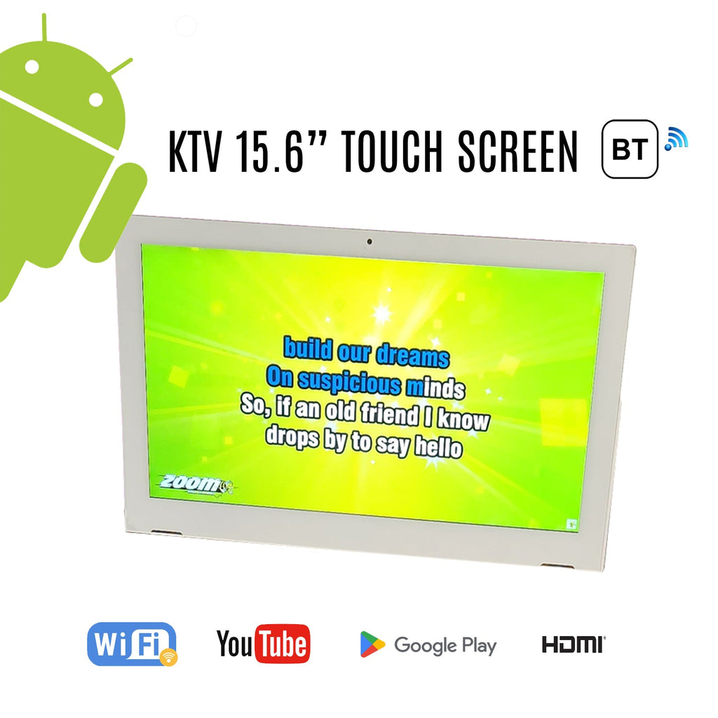 On top, you’ll find the 15.6" free-standing KTV touch screen running Android OS, offering a user-friendly experience with access to your favourite karaoke, music, movie, and gaming apps via the Google Play Store. It includes Wi-Fi and Bluetooth connectivity, plus HDMI output to another TV or projector (4m HDMI cable included).