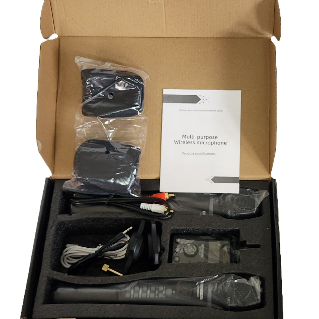 You you get is two high frequency UHF Dual Channel (CH-A: 650.10 to 659.90Mhz / CH-B: 661.30 to 671.10Mhz) Receiver paired with 2 UHF Professional Wireless Microphones, each microphone has 50 frequency channels you can select.