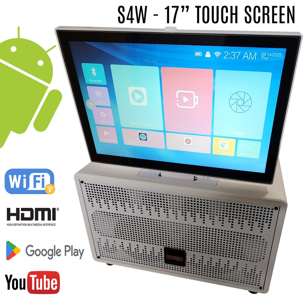 The S4W system comes equipped with Bluetooth, Wi-Fi, and a built-in Android operating system, allowing seamless karaoke streaming from apps or YouTube.